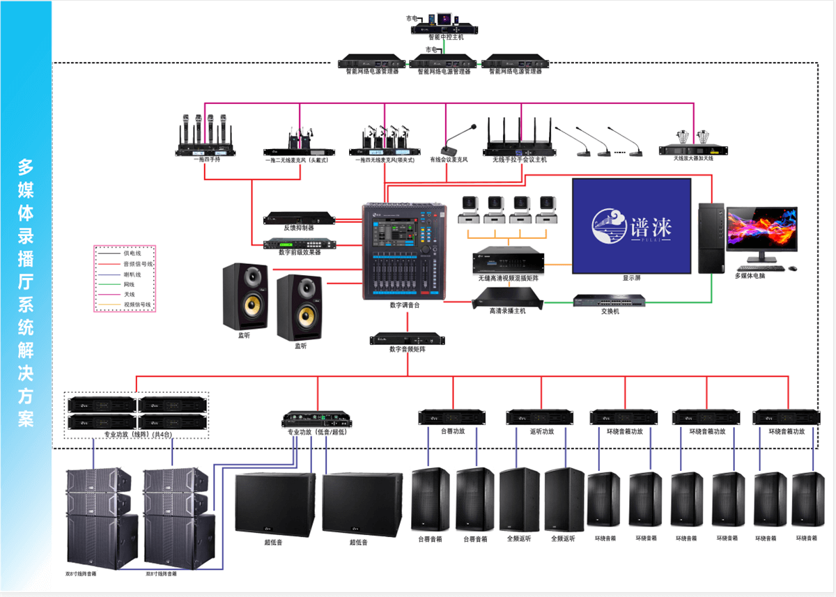 多媒體錄播會(huì)議廳系統(tǒng)解決方案(拓?fù)鋱D)