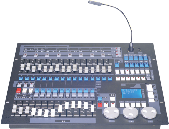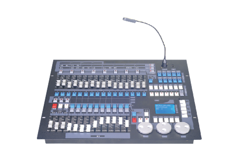 DMX512/1990標(biāo)準(zhǔn),1024個(gè)DMX控制通道,光電隔離信號(hào)輸出控制96臺(tái)電腦燈或96路調(diào)光,使用珍珠燈庫。