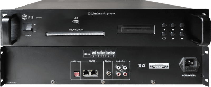 6.有通訊控制接口(RJ45),能受控于控制主機(jī)實(shí)現(xiàn)多種自動(dòng)播放模式:播放單曲、全部循環(huán)、循環(huán)單曲、停止播放等;